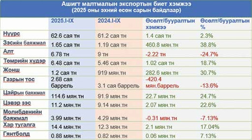 НҮҮРСНИЙ ЭКСПОРТ 9 ДҮГЭЭР САРД ТҮҮХЭН ДЭЭД АМЖИЛТ ТОГТООВ