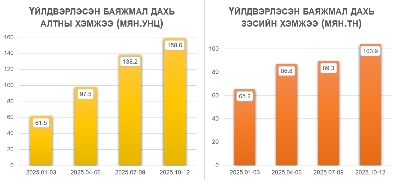 Алтны үйлдвэрлэл: IV улиралд 158.6 мянган унц.