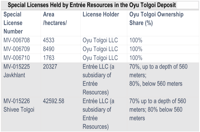 At the three-day Oyu Tolgoi hearing organized by the Interim Oversight Committee, discussions also addressed issues related to the Canadian company Entrée Resources, which holds the special licenses for the Javkhlant and Shivee Tolgoi areas within the Oyu Tolgoi deposit.