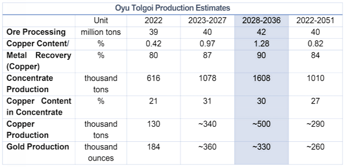Therefore, in moving forward, it is essential to reach a clear agreement and align understanding with Rio Tinto regarding the size of the Oyu Tolgoi deposit and its development. Hearing and accepting the deposit estimates approved by our Mineral Resources Professional Council is one thing, but it is equally important to reconcile these figures with the company's projections. According to previous estimates presented by Oyu Tolgoi and Turquoise Hill, a total of 1.4 billion tonnes of ore will be mined and processed through 2051. Based on these projections, the company is expected to produce 11 million tonnes of copper, 320 tonnes of gold, and 2,300 tonnes of silver. To date, 440 million tonnes of ore have already been processed and utilized.